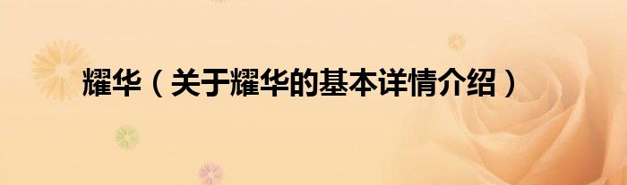 本文关于耀华的基本详情介绍就讲解完毕,希望对大家有所帮助。