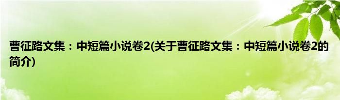 本文关于曹征路文集:中短篇小说卷2的简介就讲解完毕,希望对大家有所帮助。