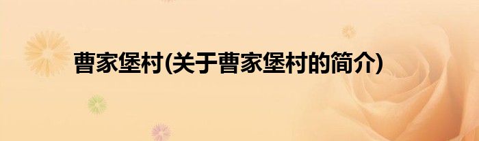 大家好,曹家堡村,关于曹家堡村的简介很多人还不知道,现在让我们一起来看看吧!