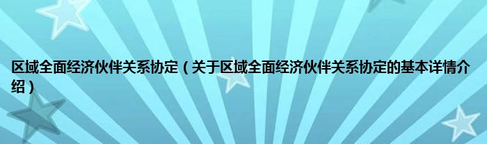 本文关于区域全面经济伙伴关系协定的基本详情介绍就讲解完毕,希望对大家有所帮助。