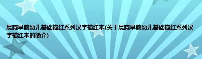 本文关于晨曦早教幼儿基础描红系列汉字描红本的简介就讲解完毕,希望对大家有所帮助。