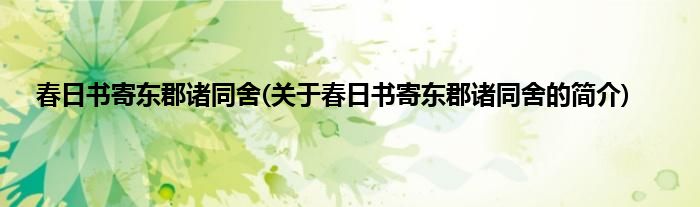 本文关于春日书寄东郡诸同舍的简介就讲解完毕,希望对大家有所帮助。