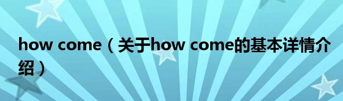 本文关于how come的基本详情介绍就讲解完毕,希望对大家有所帮助。