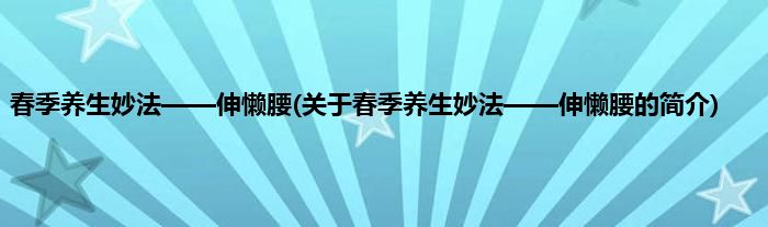 本文关于春季养生妙法——伸懒腰的简介就讲解完毕,希望对大家有所帮助。