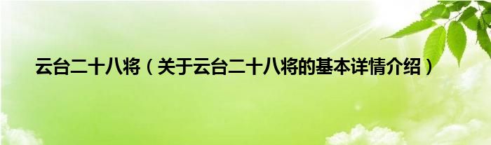 本文关于云台二十八将的基本详情介绍就讲解完毕,希望对大家有所帮助。