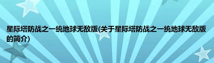本文关于星际塔防战之一统地球无敌版的简介就讲解完毕,希望对大家有所帮助。