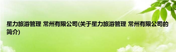 本文关于星力旅游管理 常州有限公司的简介就讲解完毕,希望对大家有所帮助。