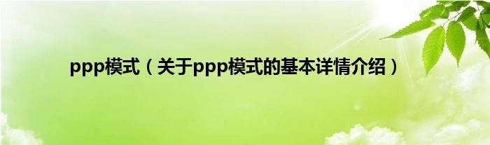 本文关于ppp模式的基本详情介绍就讲解完毕,希望对大家有所帮助。