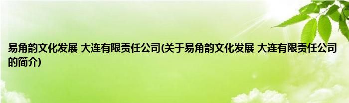 本文关于易角韵文化发展 大连有限责任公司的简介就讲解完毕,希望对大家有所帮助。