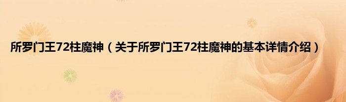 本文关于所罗门王72柱魔神的基本详情介绍就讲解完毕,希望对大家有所帮助。