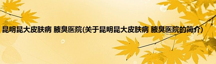 本文关于昆明昆大皮肤病 腋臭医院的简介就讲解完毕,希望对大家有所帮助。