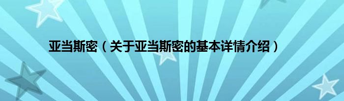 本文关于亚当斯密的基本详情介绍就讲解完毕,希望对大家有所帮助。