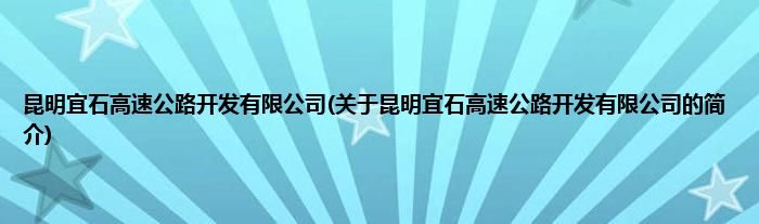 本文关于昆明宜石高速公路开发有限公司的简介就讲解完毕,希望对大家有所帮助。