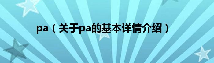 本文关于pa的基本详情介绍就讲解完毕,希望对大家有所帮助。