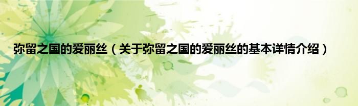 本文关于弥留之国的爱丽丝的基本详情介绍就讲解完毕,希望对大家有所帮助。