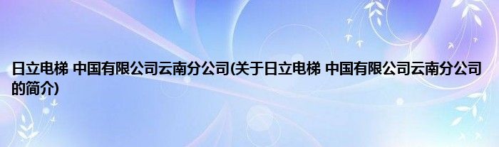 大家好,日立电梯 中国有限公司云南分公司,关于日立电梯 中国有限公司云南分公司的简介很多人还不知道,现在让我们一起来看看吧!