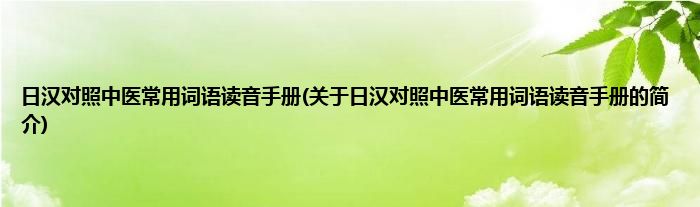 本文关于日汉对照中医常用词语读音手册的简介就讲解完毕,希望对大家有所帮助。