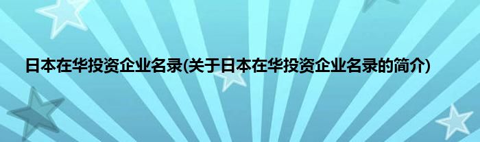 本文关于日本在华投资企业名录的简介就讲解完毕,希望对大家有所帮助。