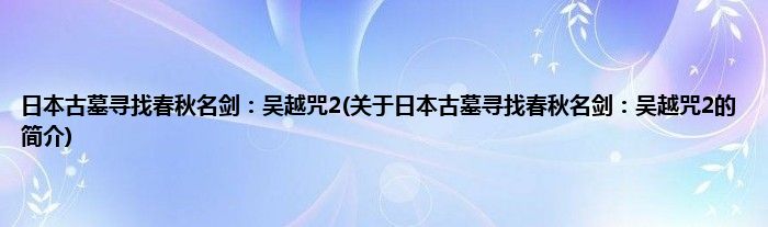 本文关于日本古墓寻找春秋名剑:吴越咒2的简介就讲解完毕,希望对大家有所帮助。
