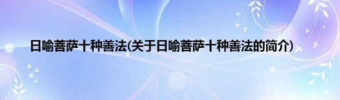 本文关于日喻菩萨十种善法的简介就讲解完毕,希望对大家有所帮助。