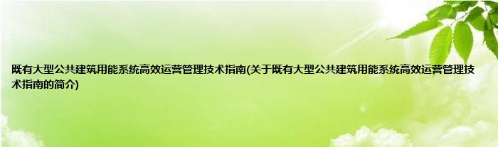 本文关于既有大型公共建筑用能系统高效运营管理技术指南的简介就讲解完毕,希望对大家有所帮助。