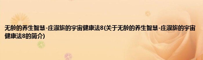 本文关于无龄的养生智慧-庄淑旂的宇宙健康法8的简介就讲解完毕,希望对大家有所帮助。
