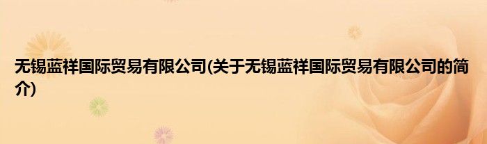本文关于无锡蓝祥国际贸易有限公司的简介就讲解完毕,希望对大家有所帮助。