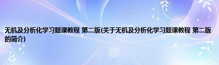 本文关于无机及分析化学习题课教程 第二版的简介就讲解完毕,希望对大家有所帮助。