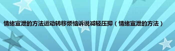 大家好,精选小编来为大家解答以上问题。情绪宣泄的方法运动转移烦恼诉说减轻压抑,情绪宣泄的方法很多人还不知道,现在让我们一起来看看吧!