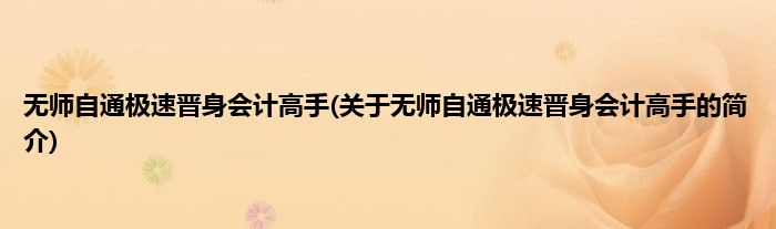 大家好,无师自通极速晋身会计高手,关于无师自通极速晋身会计高手的简介很多人还不知道,现在让我们一起来看看吧!