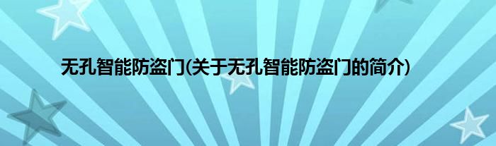 本文关于无孔智能防盗门的简介就讲解完毕,希望对大家有所帮助。