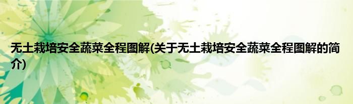 本文关于无土栽培安全蔬菜全程图解的简介就讲解完毕,希望对大家有所帮助。