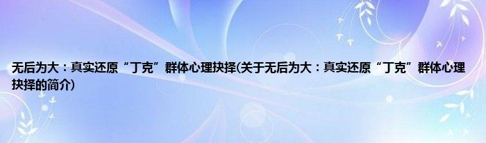 本文关于无后为大:真实还原“丁克”群体心理抉择的简介就讲解完毕,希望对大家有所帮助。
