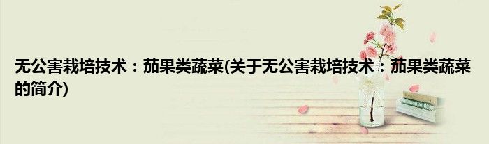 大家好,无公害栽培技术:茄果类蔬菜,关于无公害栽培技术:茄果类蔬菜的简介很多人还不知道,现在让我们一起来看看吧!