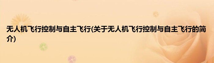 无人机飞行控制与自主飞行(关于无人机飞行控制与自主飞行的简介)