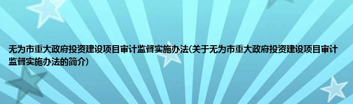 无为市重大政府投资建设项目审计监督实施办法(关于无为市重大政府投资建设项目审计监督实施办法的简介)