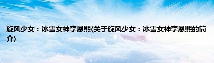 旋风少女:冰雪女神李恩熙(关于旋风少女:冰雪女神李恩熙的简介)
