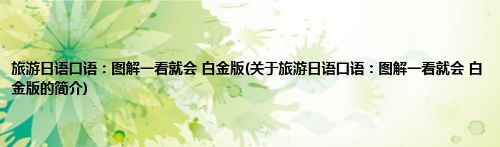 本文关于旅游日语口语:图解一看就会 白金版的简介就讲解完毕,希望对大家有所帮助。