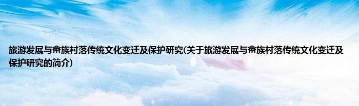 本文关于旅游发展与畲族村落传统文化变迁及保护研究的简介就讲解完毕,希望对大家有所帮助。