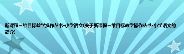 本文关于新课程三维目标教学操作丛书·小学语文的简介就讲解完毕,希望对大家有所帮助。