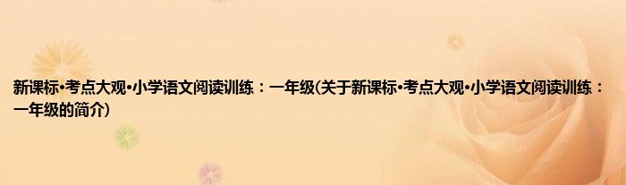 本文关于新课标·考点大观·小学语文阅读训练:一年级的简介就讲解完毕,希望对大家有所帮助。