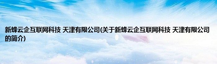 本文关于新蜂云企互联网科技 天津有限公司的简介就讲解完毕,希望对大家有所帮助。