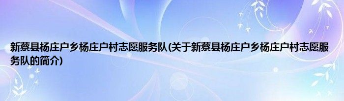 大家好,新蔡县杨庄户乡杨庄户村志愿服务队,关于新蔡县杨庄户乡杨庄户村志愿服务队的简介很多人还不知道,现在让我们一起来看看吧!