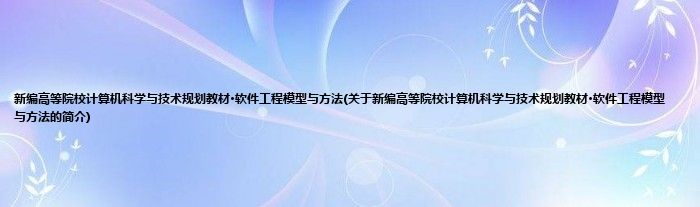本文关于新编高等院校计算机科学与技术规划教材·软件工程模型与方法的简介就讲解完毕,希望对大家有所帮助。