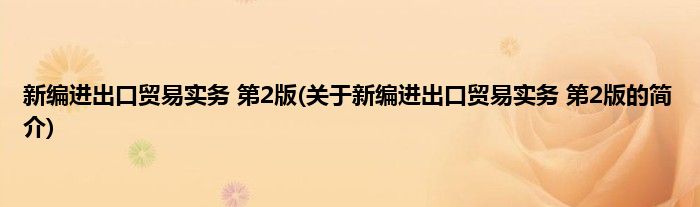本文关于新编进出口贸易实务 第2版的简介就讲解完毕,希望对大家有所帮助。