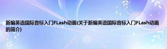 本文关于新编英语国际音标入门FLash动画的简介就讲解完毕,希望对大家有所帮助。