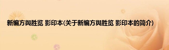 1、 《新编方舆胜览(影印本)》是2004年北京图书馆出版社出版的图书。