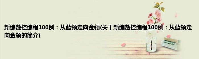 本文关于新编数控编程100例:从蓝领走向金领的简介就讲解完毕,希望对大家有所帮助。