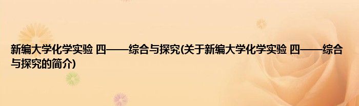 大家好,新编大学化学实验 四——综合与探究,关于新编大学化学实验 四——综合与探究的简介很多人还不知道,现在让我们一起来看看吧!