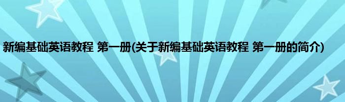 本文关于新编基础英语教程 第一册的简介就讲解完毕,希望对大家有所帮助。